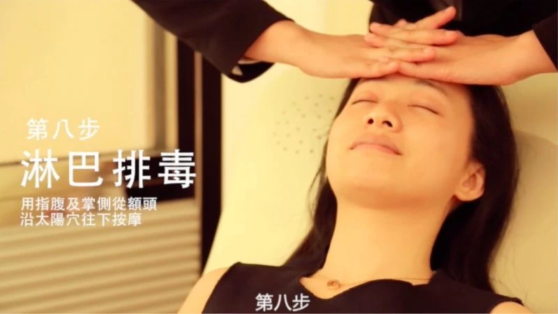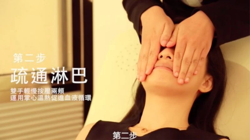 用指腹或是掌側從額頭一路按到下巴,幫助淋巴排毒脂之路順暢。