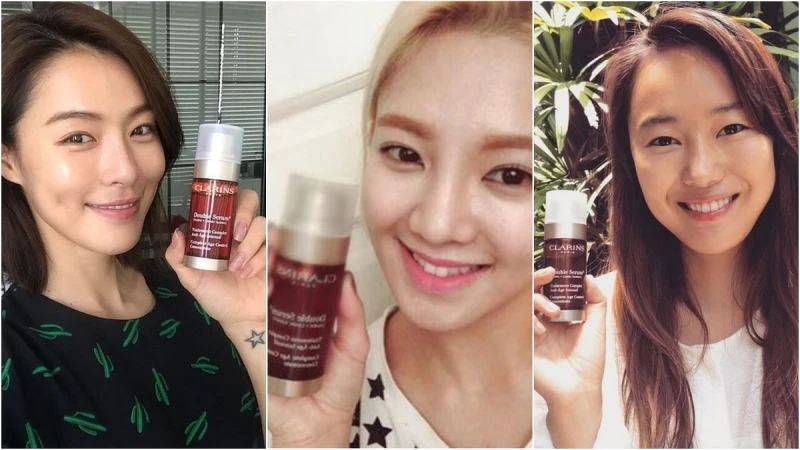 這罐經典商品不僅是克蘭詩的經典商品,就連多位知名韓國女星也情有獨鍾!少女時代的孝淵、前After School團長嘉熙、氣質女星尹珍序都曾在個人的Instagram上傳使用黃金雙激萃的保養美照!看著他們透亮白皙的臉蛋,讓人也好想要入手啊!