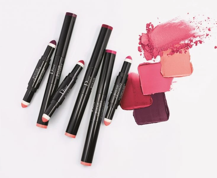 Dior 2017春妝同步推出「雙效氣墊染唇筆」,雙頭的設計貼心又方便,先以淺色塗滿雙唇後,接著在唇中輕點亮色,輕鬆就能畫出漸層染唇妝。質地上特別選用秋冬熱門的霧面質地,讓唇妝看起來更優雅迷人。