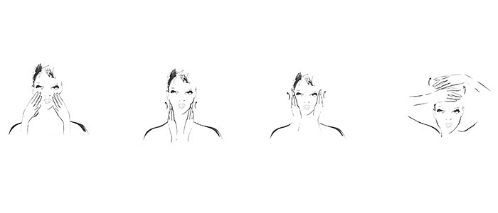 3雙手從雙頰延續輕推至額頭。