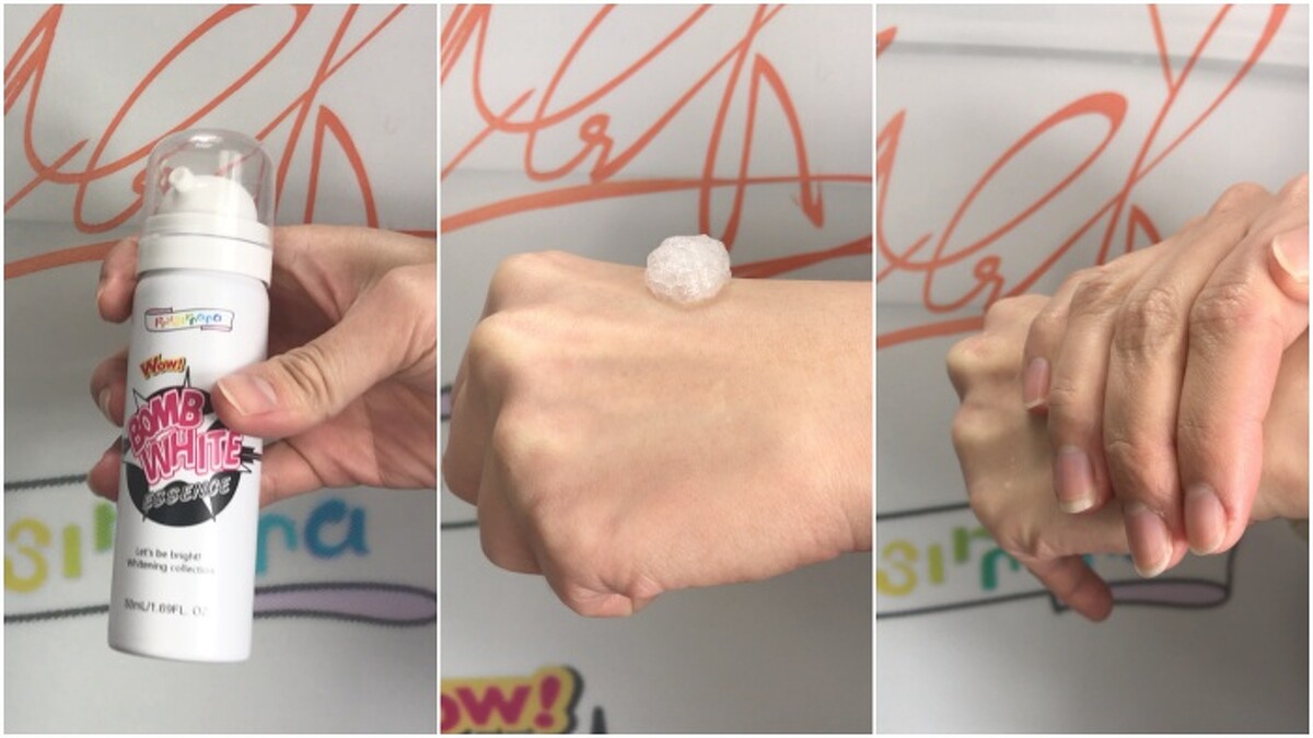在使用時,擠出一個乒乓球大小,搭配手部按壓激發碳酸更深層的發泡效果,壓住肌膚時停留約 2-3 秒放開,感受美白精華在肌膚跳動的效果。最後輕拍全臉肌膚讓精華完全吸收!