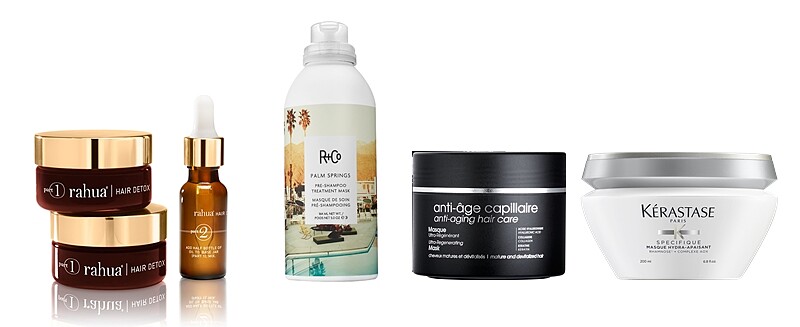 臉離不開面膜,細緻如髮絲同樣少不了它。不同於過去的髮膜多在洗髮後使用,訴求強力滋潤。現在的髮膜出現了「前導」概念,也就是洗髮前就敷上,例如Rahua的髮浴組合,必須先將內附的髮油倒入滋養霜攪拌均勻後,塗抹於髮絲並按摩,接著靜置15分鐘後才以洗髮露洗淨。透過以油溶油的原理,先行深層淨化毛囊。J.f.lazartigue 同樣有乾髮時敷的髮膜,因為品牌認為這時毛鱗片和角質纖維間的縫隙呈乾燥狀態,能藉此讓髮膜中所含的養分與保濕因子達到高度滲透效果。不僅髮絲,Kérastase 甚至推出「頭皮」專用的敷膜,在洗髮後塗抹於頭皮上,並搭配按摩,微微的清涼感帶來舒緩作用,讓頭皮更顯清爽。