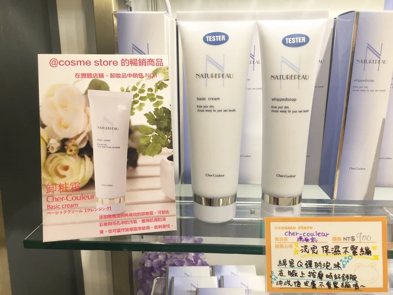 訴求敏感肌專用的保養品牌Cher-Couleur,旗下的洗面乳跟卸妝霜一向都是日本@cosme store的NO 1.熱銷商品,據說最大特點就是柔細的泡沫,洗起來非常舒服