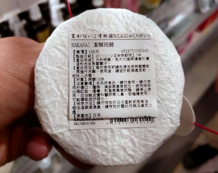 一般清潔用品以海綿或毛巾居多,但Makanai採用天然蒟蒻,一打開來觸感稍硬,但碰到水分之後就會變成QQ的觸感,變成對肌膚較溫和的洗顏工具。