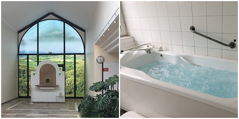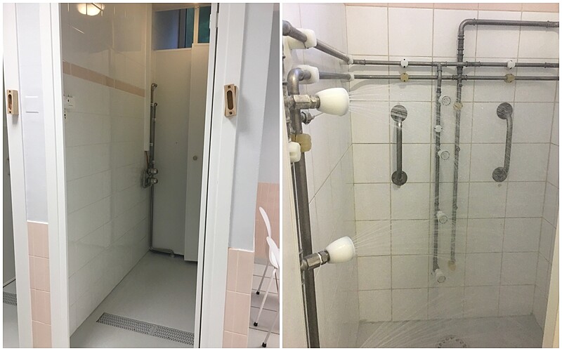 泡完澡,護理師再將我們帶到淋浴間,在這裡淋浴5分鐘,將上一步驟中軟化的皮屑、髒汙都沖洗掉。最後還有5分鐘的極細活泉水噴霧噴灑全身,藉此舒緩、鎮靜肌膚。