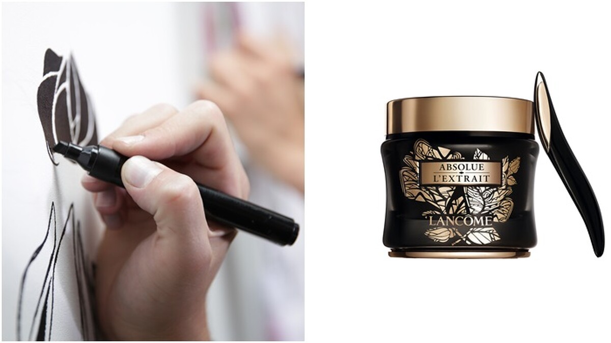 今年這瓶珍貴乳霜換上全新包裝,蘭蔻找來法國新銳藝術家Alex & Marine聯手合作,運用他們最擅長的手繪刺印風格打造玫瑰圖騰,並躍上「絕對完美黑鑽奧秘霜 手繪刺印版」的瓶身與外盒。