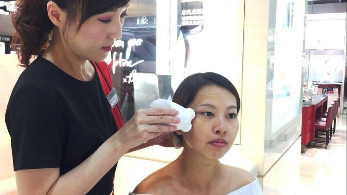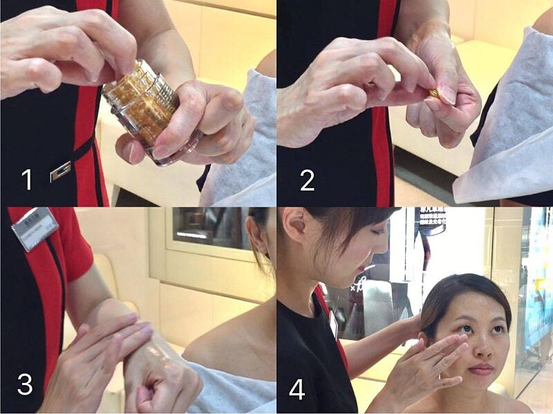 拉提完之後,美容顧問會一層層的讓客人體驗經典明星商品,從化妝水、精華,並透過臉部按摩,讓這些保養品可以充分地被吸收。