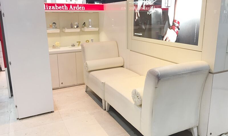 專櫃內的半躺椅,只要將活動式的拉門拉開,就是一個隱密的小空間,可以讓客人休息、做基礎護膚、體驗產品。