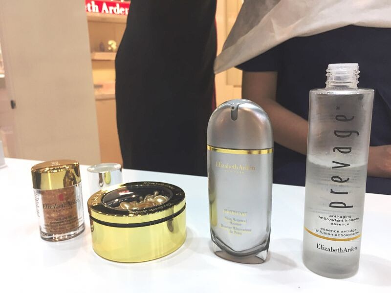 走到伊莉莎白雅頓的櫃位馬上被閃光閃到,不論是黃金膠囊,或是艾地苯系列,都是抗老的最佳選擇。
