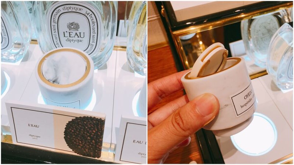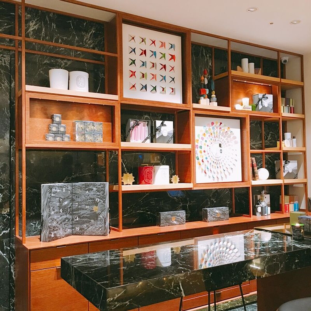 diptyque最初在法國是由布料、家飾起家,而後才開發出香氛產品。因此店內有許多家居用品擺設,像書本、玉石裝飾等等,讓整體空間看起來更有質感,可惜這些都是非賣品(泣)。