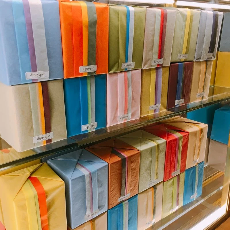 就連包裝也藏有小巧思,在這裡購買香氛產品擁有特殊摺紙包裝,每個包裝上都有3種配色,而依照不同香氛有固定的相應搭配,據說目前已有上千種組合,完全不怕重覆。