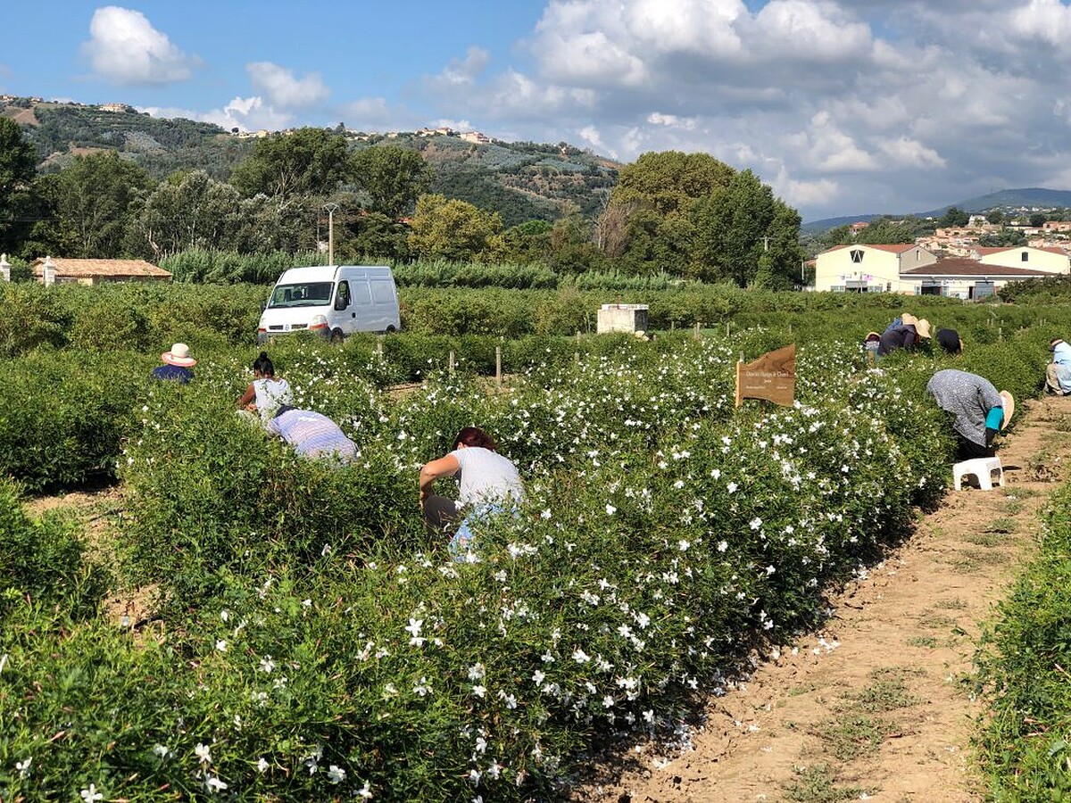 每年5到10月是他的盛產期,當天候佳,夜晚溫度超過14度,茉莉就會大量盛開,這時就會需要一組約100人摘取約3個月2000小時,不過這樣才能萃取出一公斤的茉莉香精。