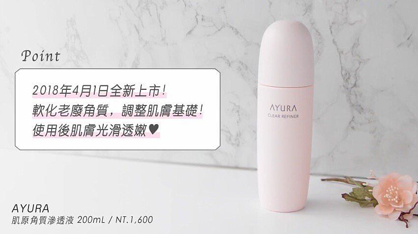 促進滲透效果,AYURA 肌原角質滲透液α的美容成分確實滲入因角質層凌亂、不正常剝落、堆積、乾燥導致不易穿透的不安定不調肌膚,促進後續保養品的吸收力。