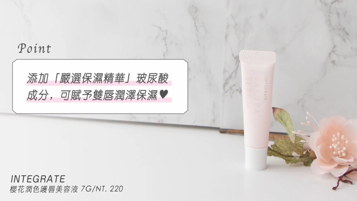 唇部保養是最容易被忽略的基礎保養之一,春夏又有超多新款唇膏上市,若是沒有養好嫩唇、很容易險得老氣、沒有精神!INTEGRATE櫻花潤色護唇美容液一抹溫柔包覆雙唇,非常方便隨身攜帶!而且以春天的櫻花為意象,推出從外包裝到內容物都夢幻到不行,完全是女孩們的菜!