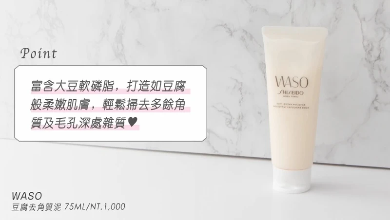 空汙實在太猖狂,只有單純的清潔肯定不夠,選用WASO豆腐去角質泥偷偷加在日常的保養中,以可生物分解的三種植物微粒溫和去角質,獨特技術完整萃取豆腐,富含大豆卵磷脂,打造如豆腐般柔嫩肌膚。無油配方,輕鬆掃去多餘角質及毛孔深處雜質。週週2次,去除多餘的老廢角質,就不會造成肌膚黯淡無光的困擾!