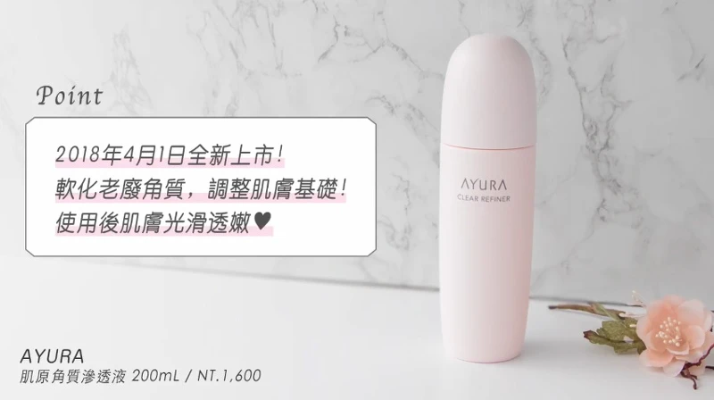 促進滲透效果,AYURA  肌原角質滲透液α的美容成分確實滲入因角質層凌亂、不正常剝落、堆積、乾燥導致不易穿透的不安定不調肌膚,促進後續保養品的吸收力。