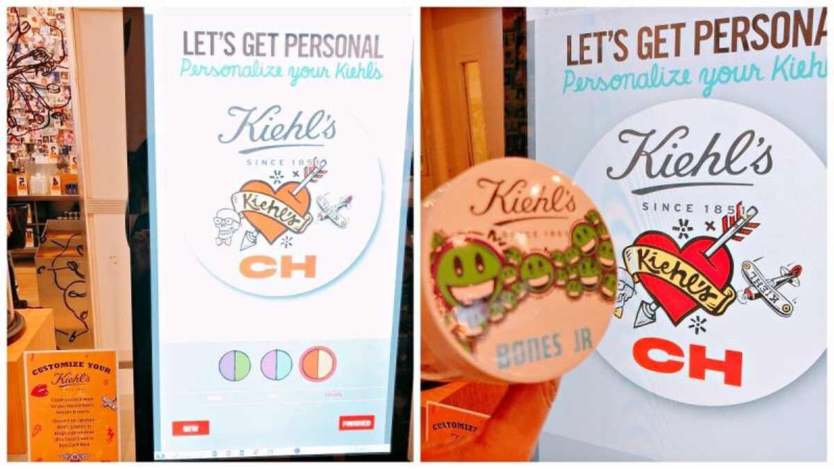 在紐約旗艦店中有一台客製化貼紙標籤機,只要購買冰河醣蛋白保濕霜,就可以利用機器選擇喜歡的圖案、字母、色系後,印出個人專屬的瓶蓋貼紙。貼在乳霜上面就是一罐獨一無二的專屬保養品。