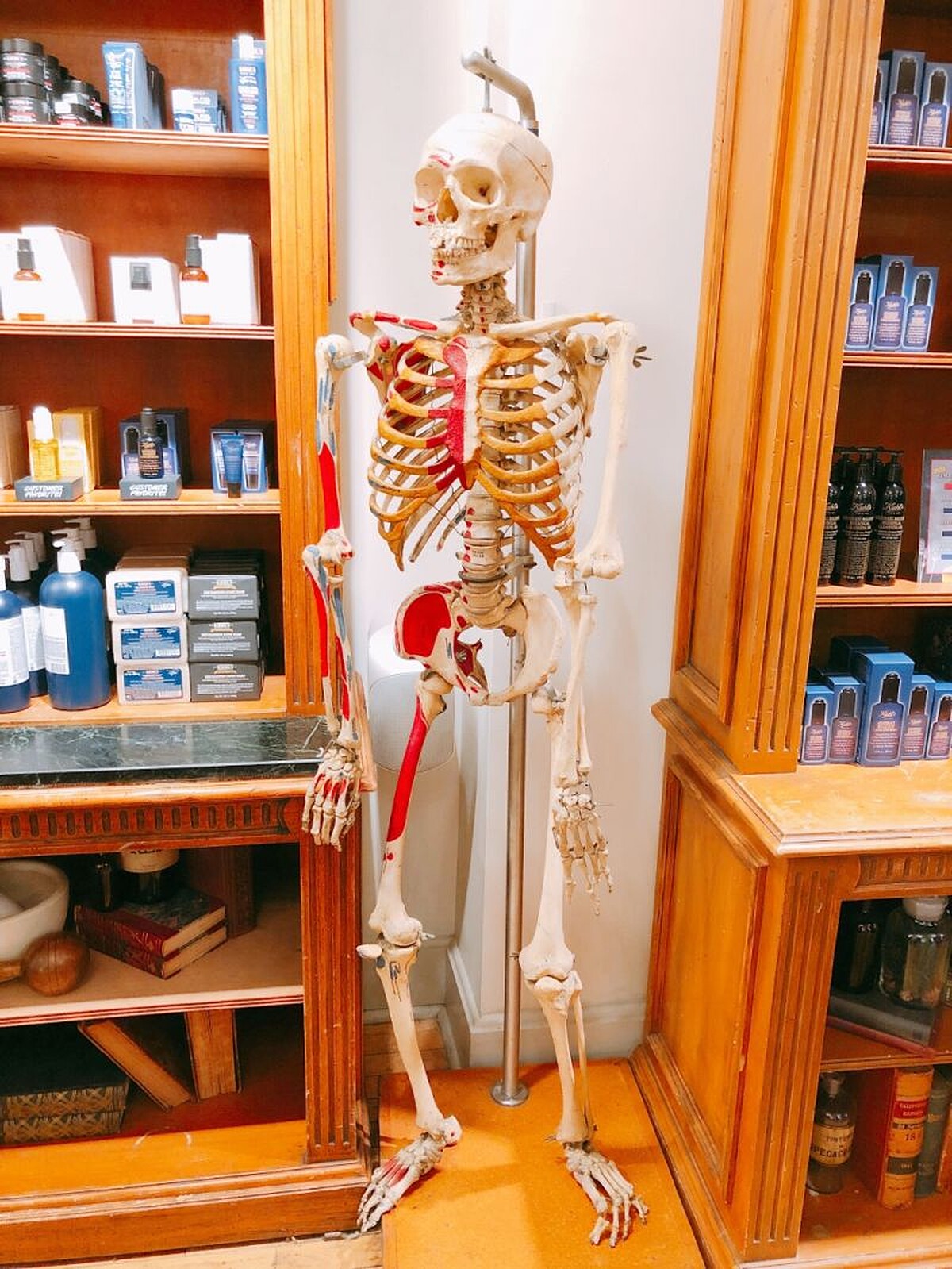 ↑唯獨在Kiehl’s紐約旗艦店有位「骨頭小姐」,是唯一一名女性並且是真人的骨架。其他地方的Mr.Bone都是模型。