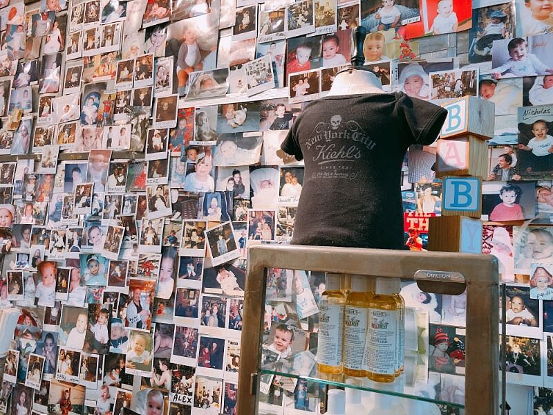 沒看錯,在Kiehl’s紐約旗艦店裡真的有販售印上Kiehl’s字樣的嬰兒包屁衣,堪稱是品牌的隱藏版商品。由於Kiehl’s從社區藥方起家,因此與左鄰右舍建立起深厚感情,因此不少居民長大後都會特地寫明信片、寄照片給Kiehl’s藥局分享生活點滴,這些照片都被貼在旗艦店牆上。