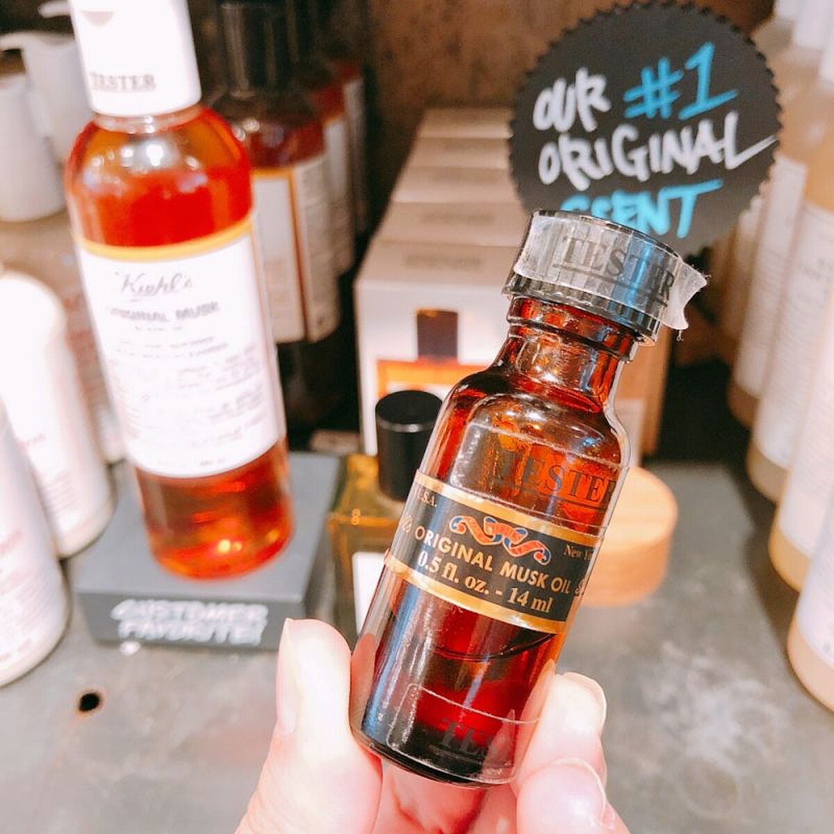 Kiehl’s的原·麝香香水也是默默熱賣的明星商品,它的前身來自有「Love Oil」之稱的麝香精油(現已無販售),過去因為香氣太過魅惑而被封存在藥房地下室。直到有位女性顧客來到Kiehl’s時不經意提到有暗戀對象,卻苦惱無法獲得對方注意,Kiehl’s店員特地用此配方為她調製了麝香香水,結果過沒多久就聽見兩人順利在一起的好消息,讓這罐香水得到「愛情靈藥」的稱呼。