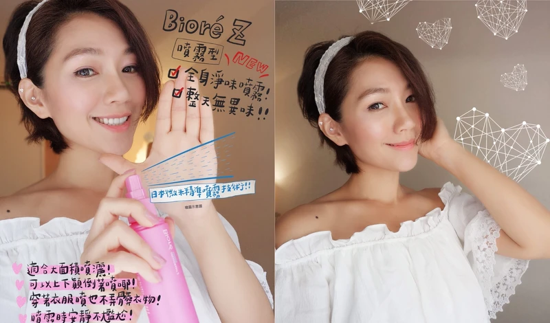 她說:「我使用Bioré排汗爽身淨味劑Z兩週後實在讚嘆不已!台灣天氣超級濕熱,讓我本來在德州不怎麼流汗的身體也受不了,一出門背部就濕整片。本來超擔心身上會有臭味,但好幾次出門一整天下來真的完全沒有味道~運動大噴汗之後再也不用擔心在電梯裡尷尬了!」