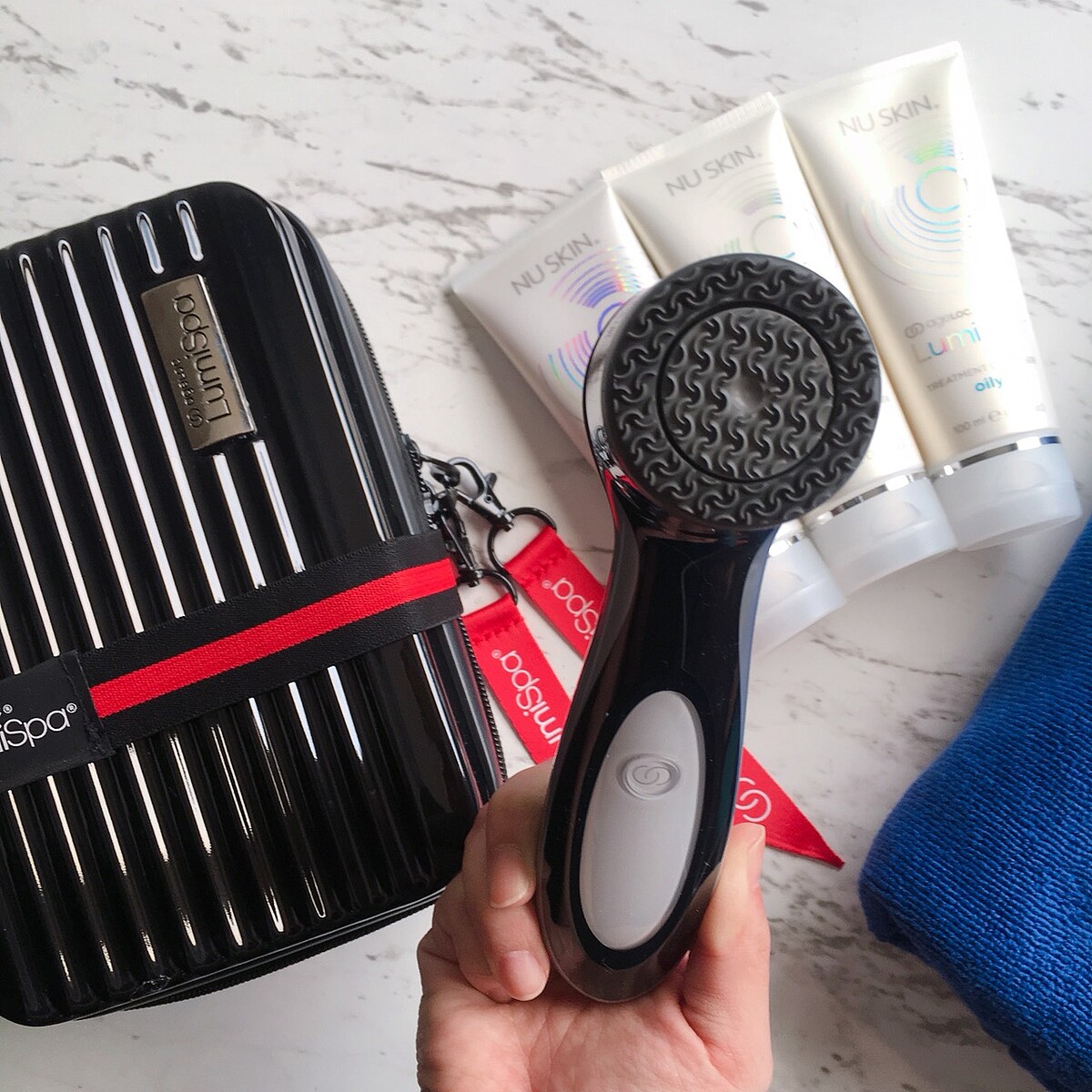 此外,為達到個人化保養訴求,NU SKIN科研團隊亦針對不同膚質,挑選出質地與ageLOC科研配方最適切的5款LumiSpa專屬淨膚露/霜,除適合中性及混和性肌膚使用之平衡款,全新推出乾性肌適用之保濕款,油性肌適用之控油款,柔嫩肌適用之輕柔款,與痘痘肌適用之抗痘款,搭配專利新動護膚導頭,滿足不同膚質需求,每次2分鐘,享有轉、伸、彈護膚新體驗,Hold住臉部彈力肌。