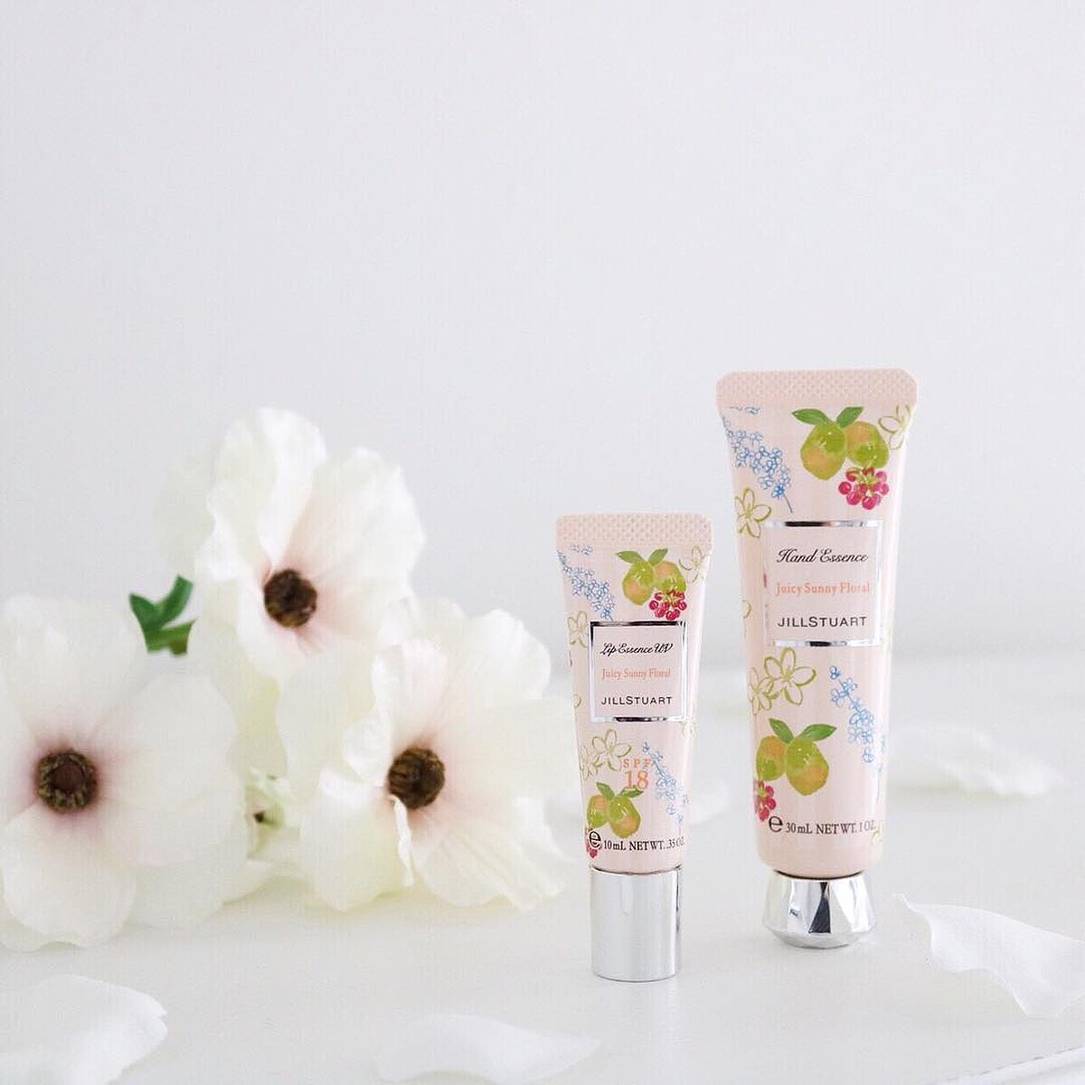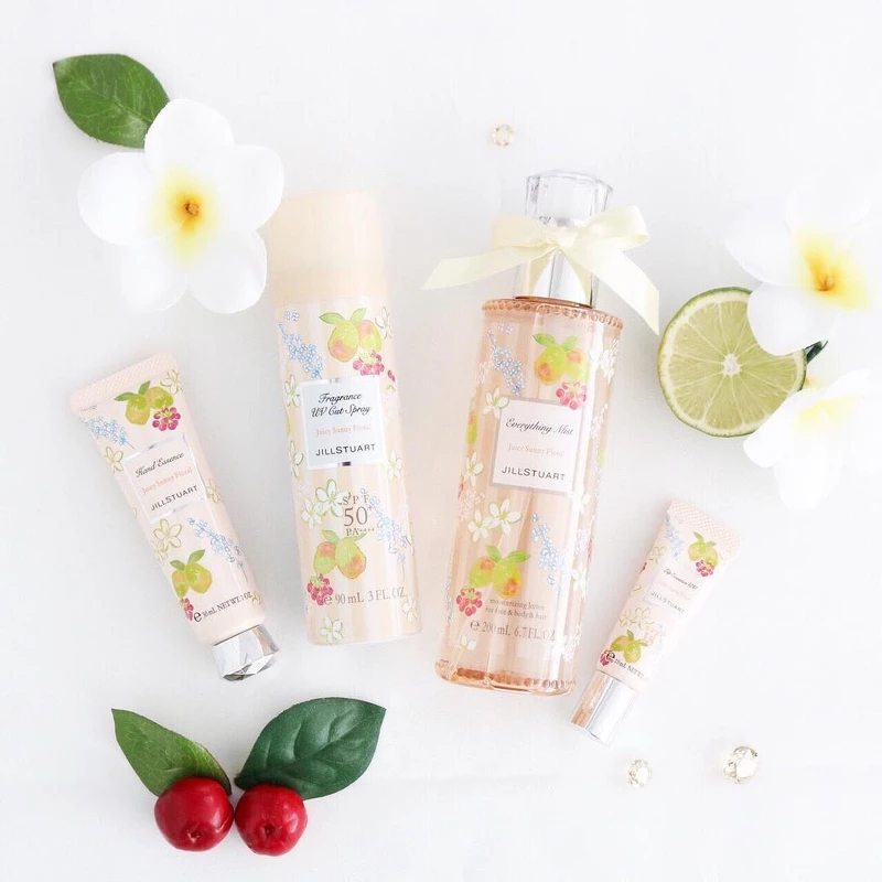 面對夏日豔陽,JILL STUART以南國水果為靈感,設計出「夏日果漾花香調」的夏季限定品,包括:保濕噴霧、防曬噴霧、護手霜和美唇精華。