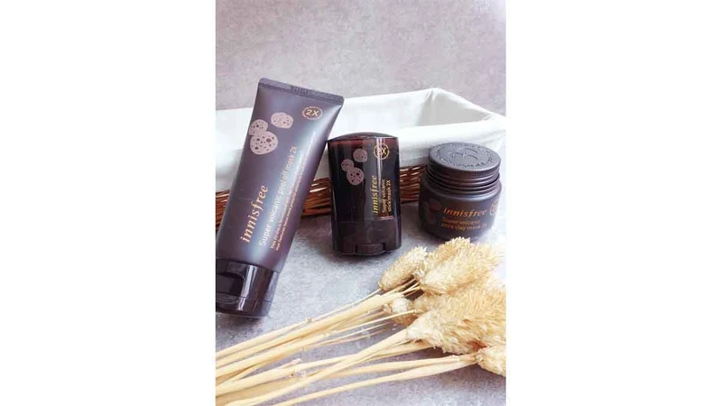 超級火山泥三重奏超級火山泥面膜三重奏,第一重就是innisfree最經典的就是罐狀的「超級火山泥毛孔潔淨面膜」,今夏大進化,毛孔吸塵器的原料大升級,濟州火山皮脂淨化粉末,皮脂吸附能力比上一代火山泥高出2倍。M編最怕清潔毛孔產品,過度清潔會造成肌膚更緊繃乾燥,反而惡化膚況。吸附油脂能力升級,使用中、使用後臉部完全不緊繃。
