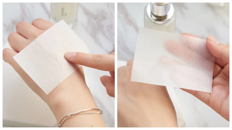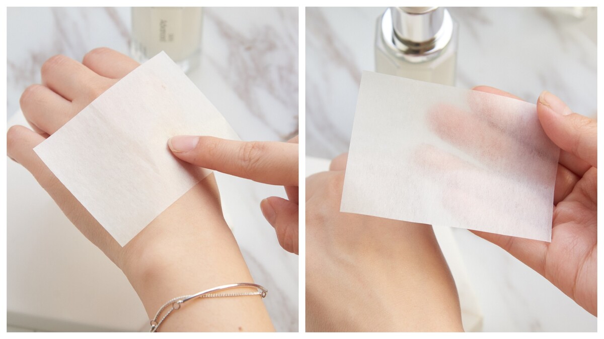 保養品最怕黏膩感,而「小鑽瓶」完全沒有這個問題,瞧瞧吸油面紙上一點痕跡也沒有,吸收快又不黏膩。