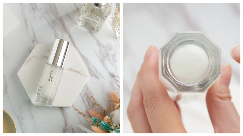 玻璃材質的八角瓶身設計,好有質感且絕美,就像是保養品中的鑽石一樣,閃閃發光,光看就覺得療癒,完全是外貌協會無誤。