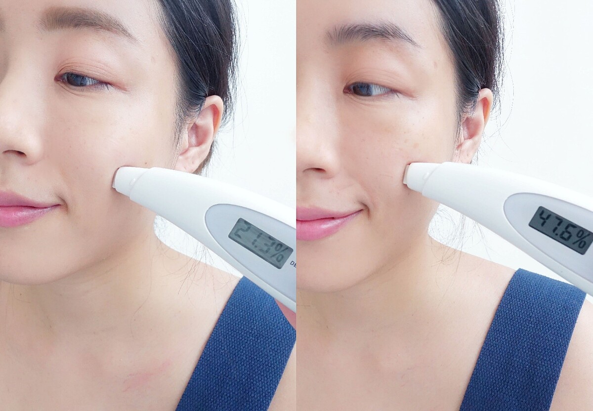 淡妝的女孩就可以選擇「三合一卸妝潔顏水 保濕型」或是「清爽型」,針對不同膚質與膚況,油肌、混和肌、痘痘肌女孩,就跟M編一樣選擇清爽型使用,添加法國高山泉水,從卸妝開始就讓肌膚回到清新舒緩的膚況,清爽控油不致粉刺痘痘。