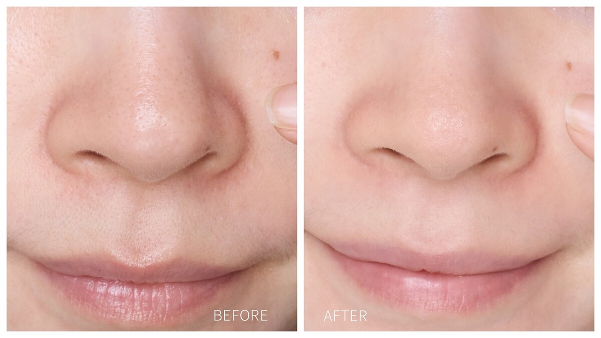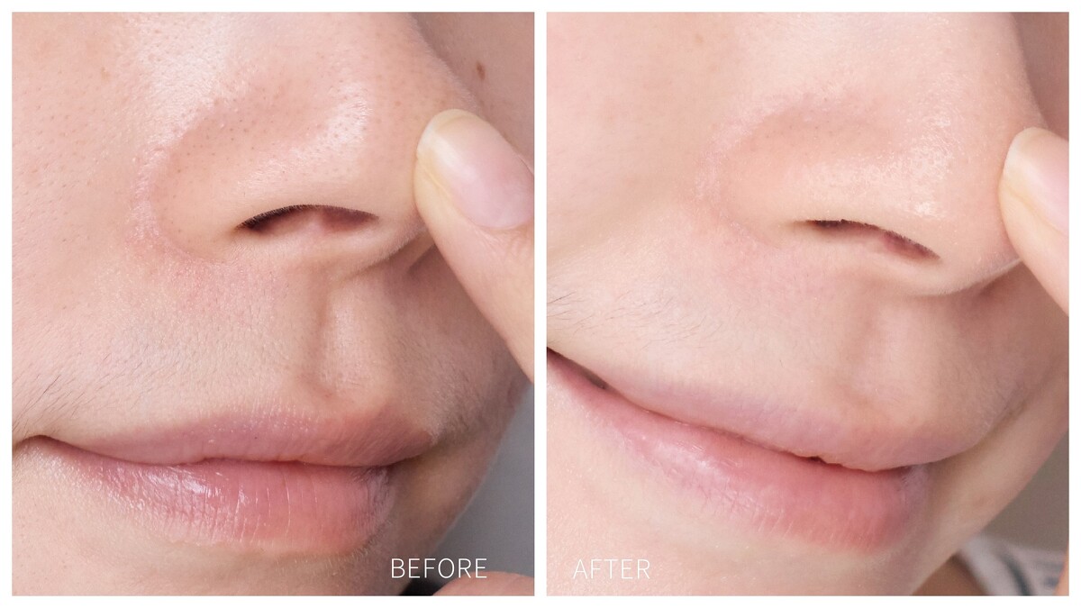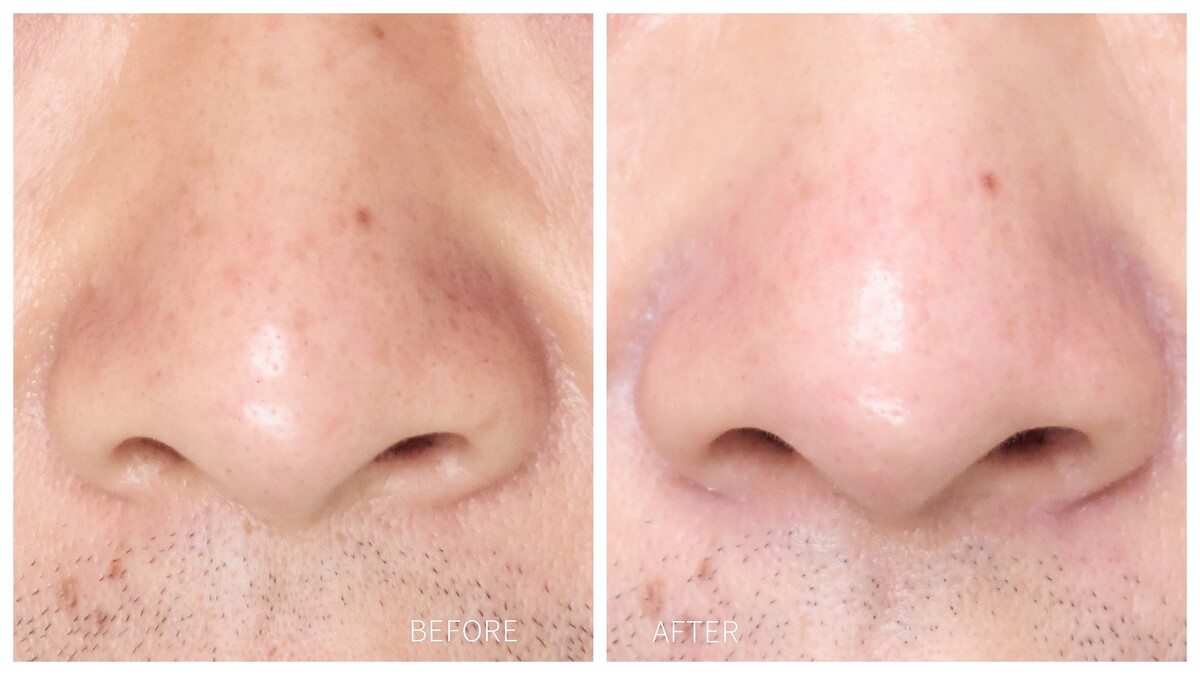 而且肌膚徹底清潔後,連膚色都白了一階不誇張。然後重頭戲來了,直接超真實呈現鼻子黑頭&粉刺林的前後對比…
