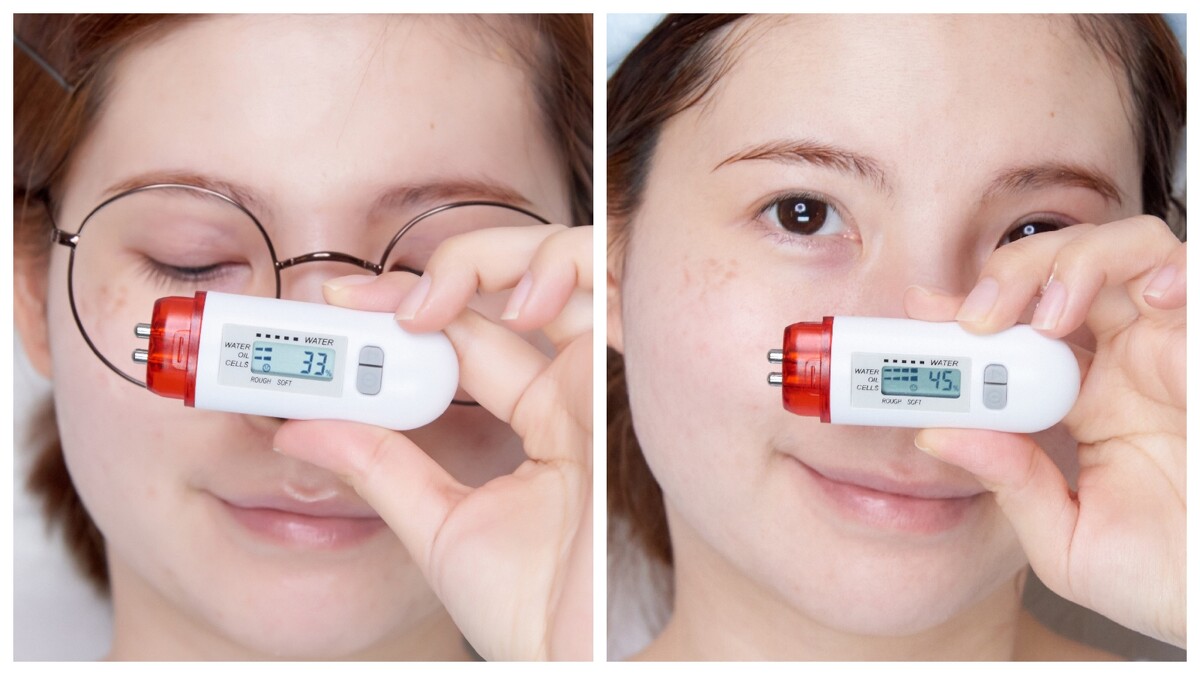 重點是,”胺基酸”的保濕效果真的放大絕,洗臉前是33%→洗完臉竟然飆高至45%,害我都懷疑是洗臉、還是在擦保養品!