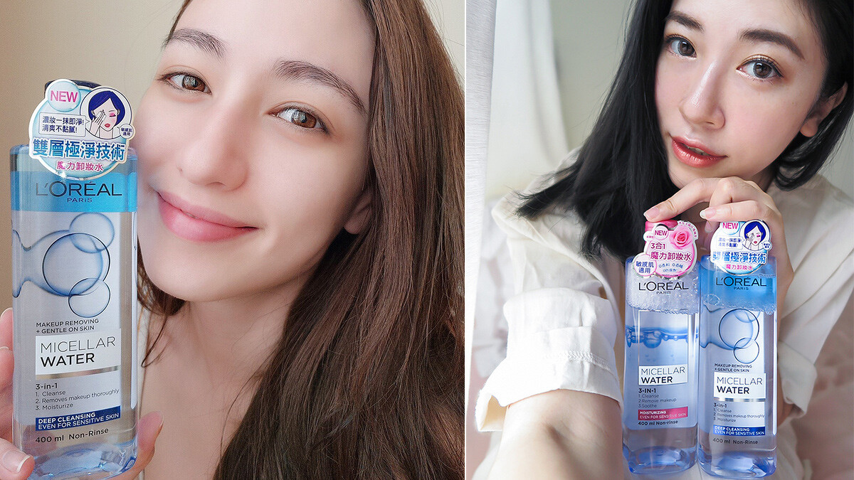 「通常大家對卸妝水的印象就是卸除力不夠,要來回擦拭很多次才能徹底卸妝,而卸除濃妝選擇油、乳產品又怕乳化不完全容易長粉刺痘痘,尤其是敏感肌挑選卸妝品就更困擾,不過呢,現在這些通通不是問題!L'OREAL三合一卸妝潔顏水共有三款,清爽控油、水感保濕,深層極淨;我因為是乾肌,用的是保濕型,卸完妝的肌膚很有水潤感,不會乾澀緊繃,肌膚像擦過保濕化妝水一般,超神奇的,沒想到卸妝潔顏水也能這麼對我的膚質!」