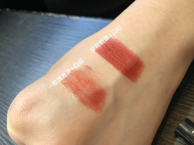 ↑先上妝前唇霜,再擦口紅,顏色更顯色飽和。