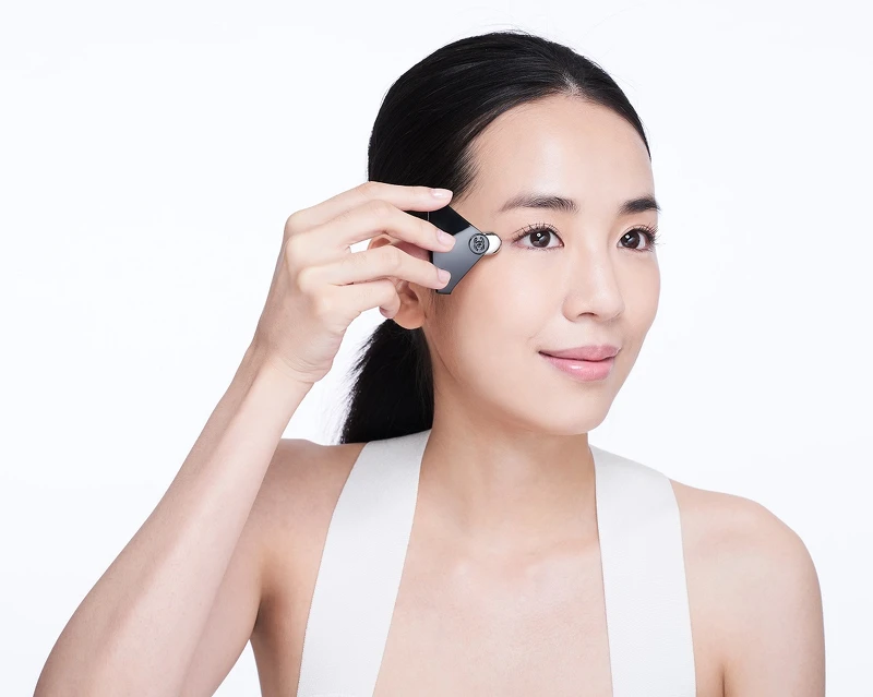 用優雅信封造型的超V心機按摩板(這可是亞洲限定復刻發售的喔),讓臉部輪廓與線條快速逆轉勝~按摩板上下冰涼的白鋼材質,光是接觸臉部就無比舒適、釋放壓力,夏天用超棒的。
