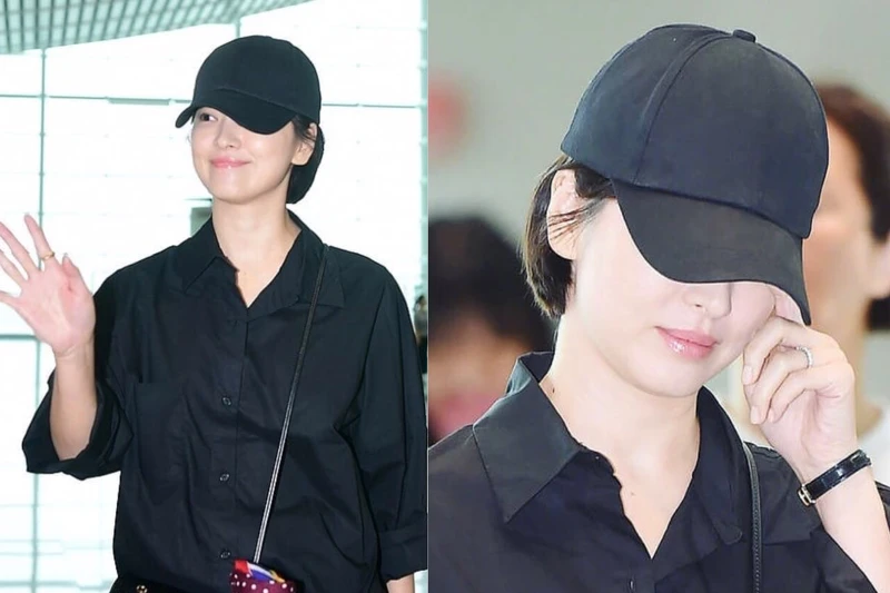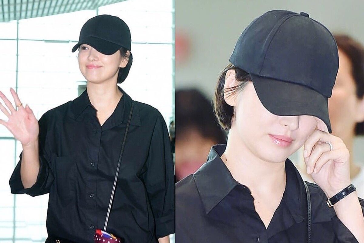 宋慧喬為品牌前往香港出席活動,今日身著黑色襯衫與牛仔短褲現身仁川機場,頭上帶著棒球棒,卻遮掩不了一頭黑色短髮的俏麗感。