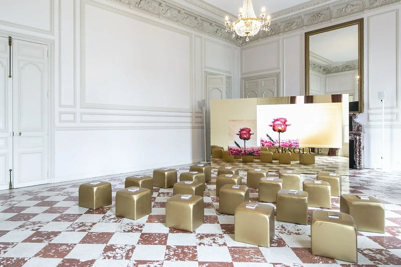時至今日,蘭蔻則是選擇了氣勢磅礡的古堡,在大量玫瑰佈置起會場,揭開「黃金瑰保養」的下一個重要篇章。記者會現場熱騰騰現身的「全新絕對完美系列」,除了傳承現有兩大成分關鍵:「大馬士革晨露玫瑰」、「普羅旺斯千葉玫瑰」外,更破天荒融入「黑鑽玫瑰」的頂級成份,研創出「黃金玫瑰瞬效配方」。