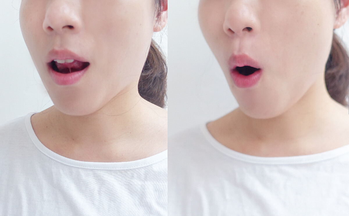 掰掰雙下巴:舌尖頂在門牙後,重複3~5次。