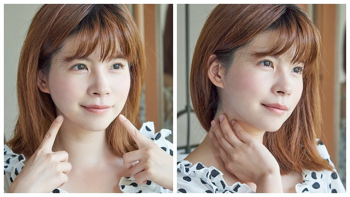 因為好延展,所以也可以像M編一樣,搭配一些緊緻拉提的手法。想要當零死角美人,輪廓線的位置記得推好推滿,用指節的部分順著臉型由下往上輕推拉提。