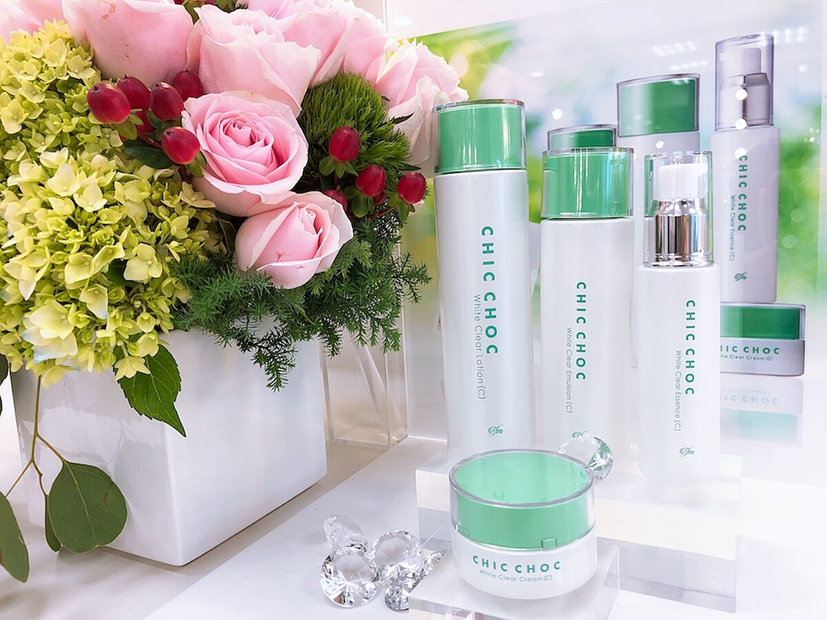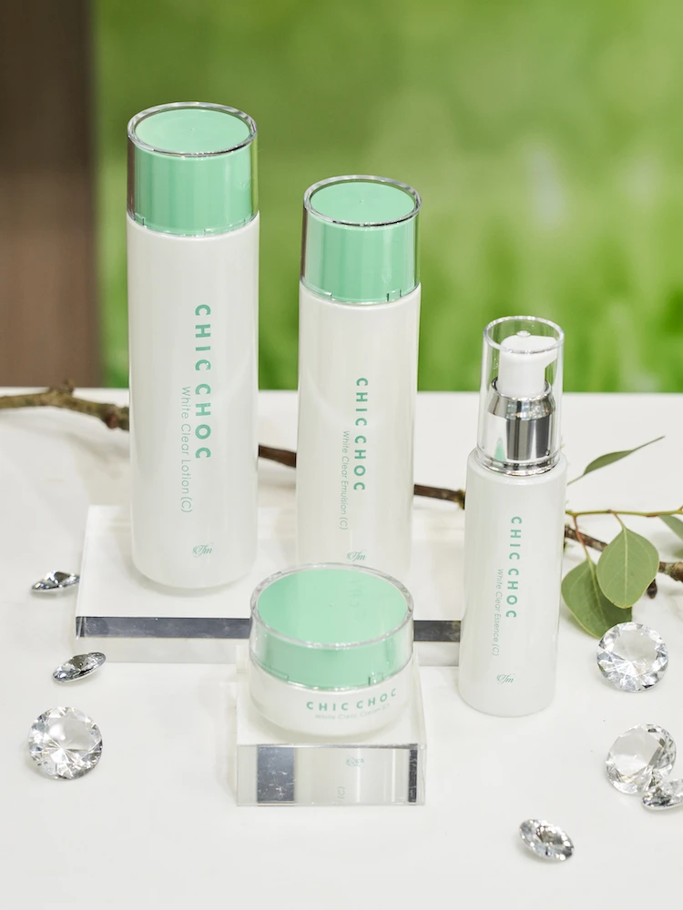 因應於台灣消費者對於美白的需求,CHIC CHOC推出全新淨透美白系列,主要含有美白成分「傳明酸」可抑制黑色素形成及防止色素斑的形成,從根本美白肌膚,提升肌膚晶透和明亮感。增添含有修護肌膚乾燥提升肌膚代謝力的「維他命E」,能持續改善肌膚維持水嫩膚質。