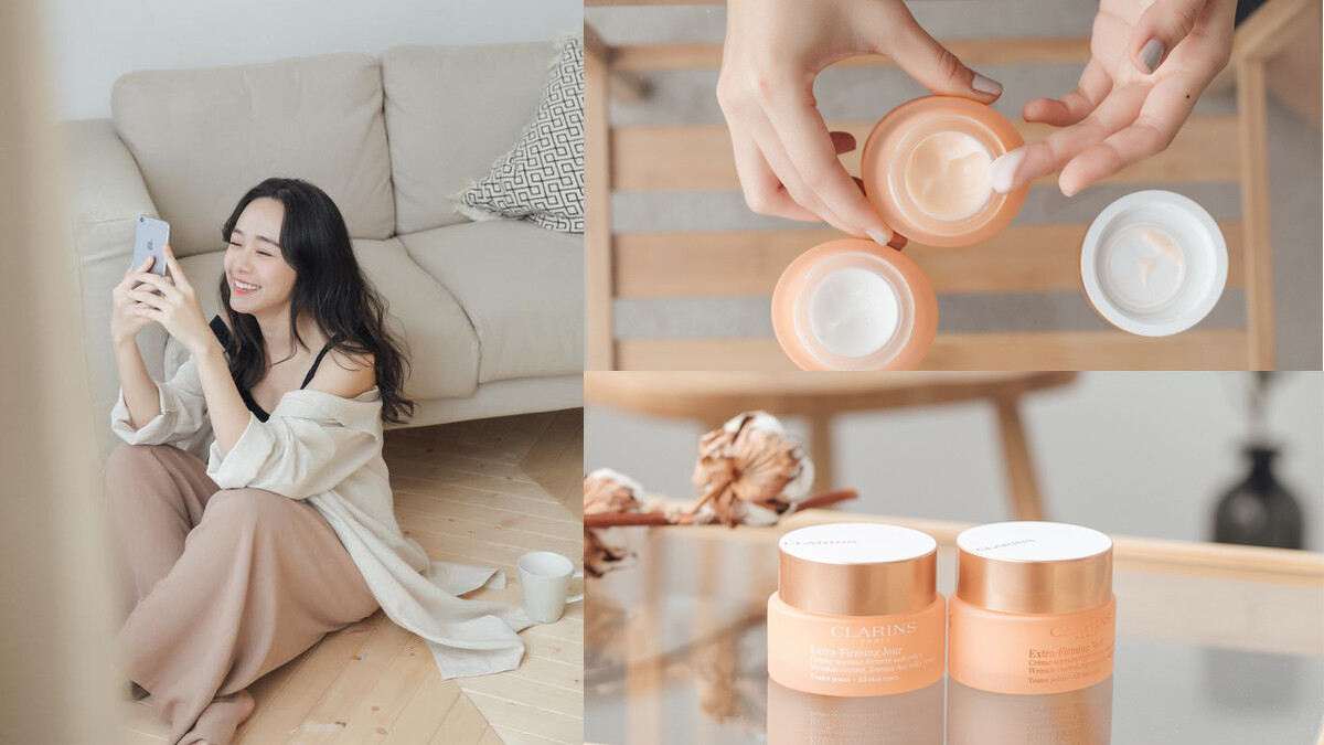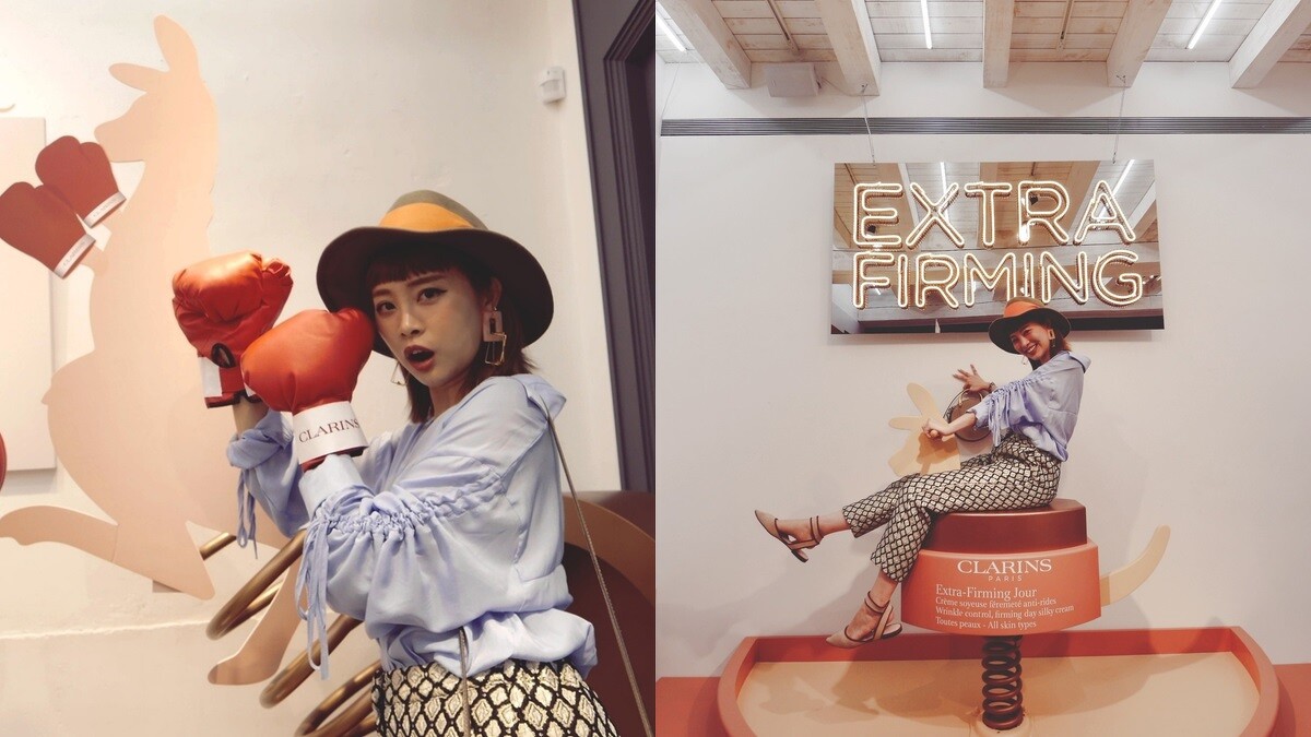 彤彤說幸好這時候受邀參加了克蘭詩彈簧霜記者會 ,煥顏緊緻彈力霜添加了超可愛的植萃成分叫做-袋鼠花,可以讓透過按摩從肌底再次活化緊緻起來,加上她也不諱言每天低頭看手機追劇就是好幾個時辰 (對!她就是這樣說,宮廷劇最近中毒很深!)地心引力眼看就要把她抓走,深怕兩頰肉肉又鬆又垂的彤彤,一拿到煥顏緊緻彈力晚霜,回家彤彤一定會用雙手拉提下巴的線條,然後邊看劇(是有多愛…),白天用煥顏緊緻彈力日霜,保養其實很輕鬆呢!