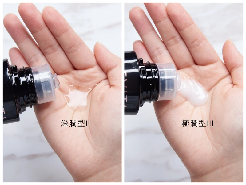 有兩種不同質地,可以依照自己的膚質使用,也可以像我一樣,白天使用滋潤型II的柔滑濃潤質地、晚上使用極潤型III的乳白濃潤質地。