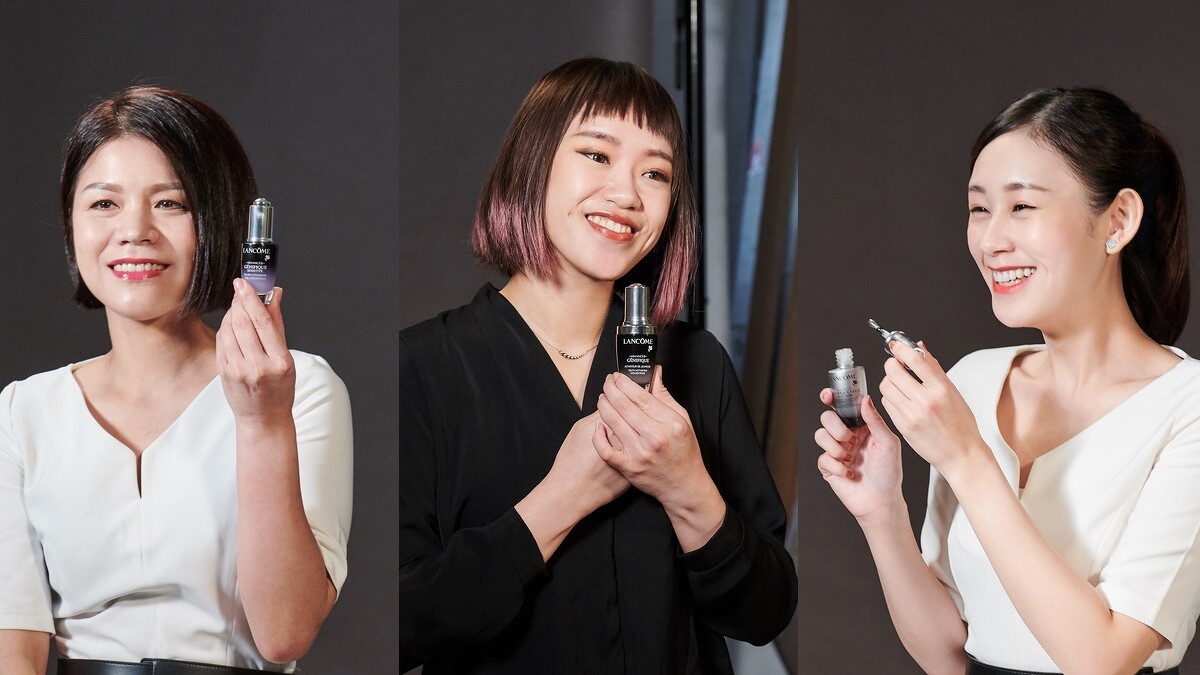 因為實在太好聊,拍攝這天M編抓著櫃姐問不停,首先當然是最近紅到翻掉的人氣小黑系列到底有多威,三個人竟然給我異口同聲說:「是此生用過可使肌膚一夜兩倍發光、三倍彈嫩、年輕再現,時刻都像代言人一樣擁有肌底光的超強系列!」說實話,M編是肌因鐵粉沒錯,但這彷彿奇蹟再臨的效果…(立刻抓住櫃姐衣角逼出真心話)!