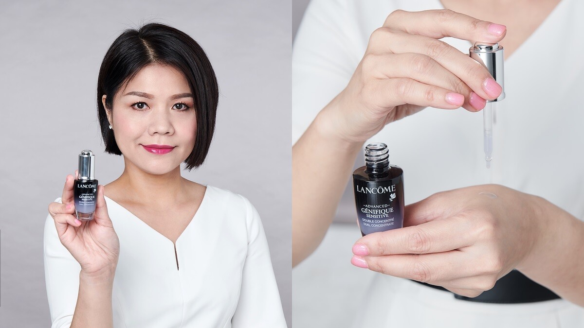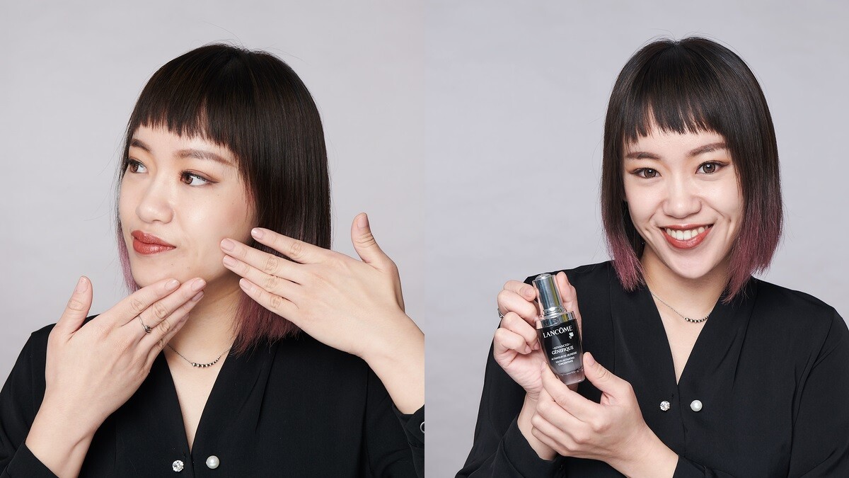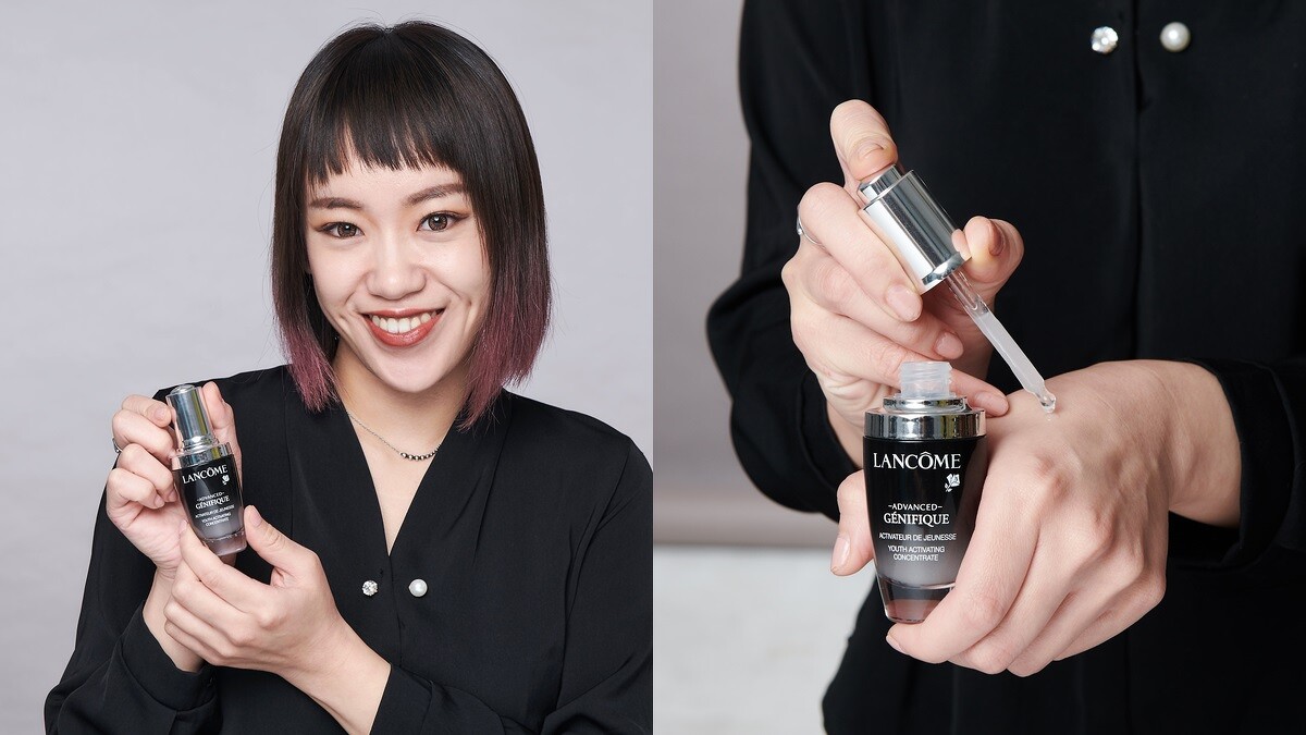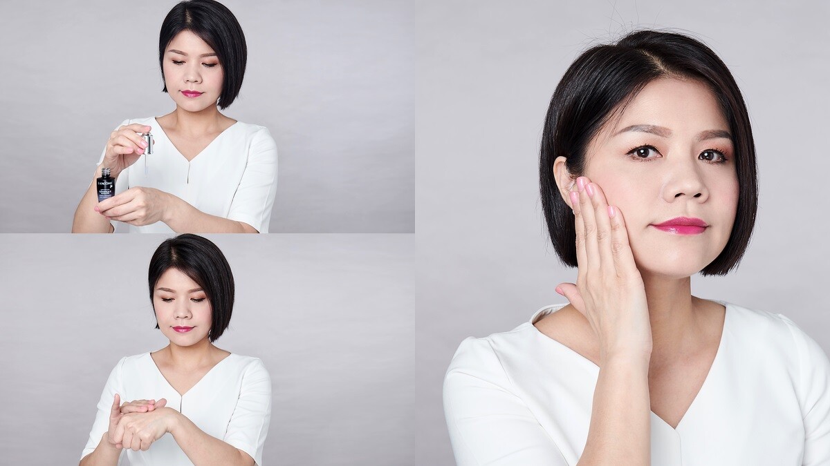 Lancome當家活動彩妝師且擁有資歷6年的婷茹根本將小黑瓶發揮到最極致,白天上妝前一定全臉先塗抹小黑瓶,將多種修護活性釀酒酵母、雷特氏B菌一次激活肌底。