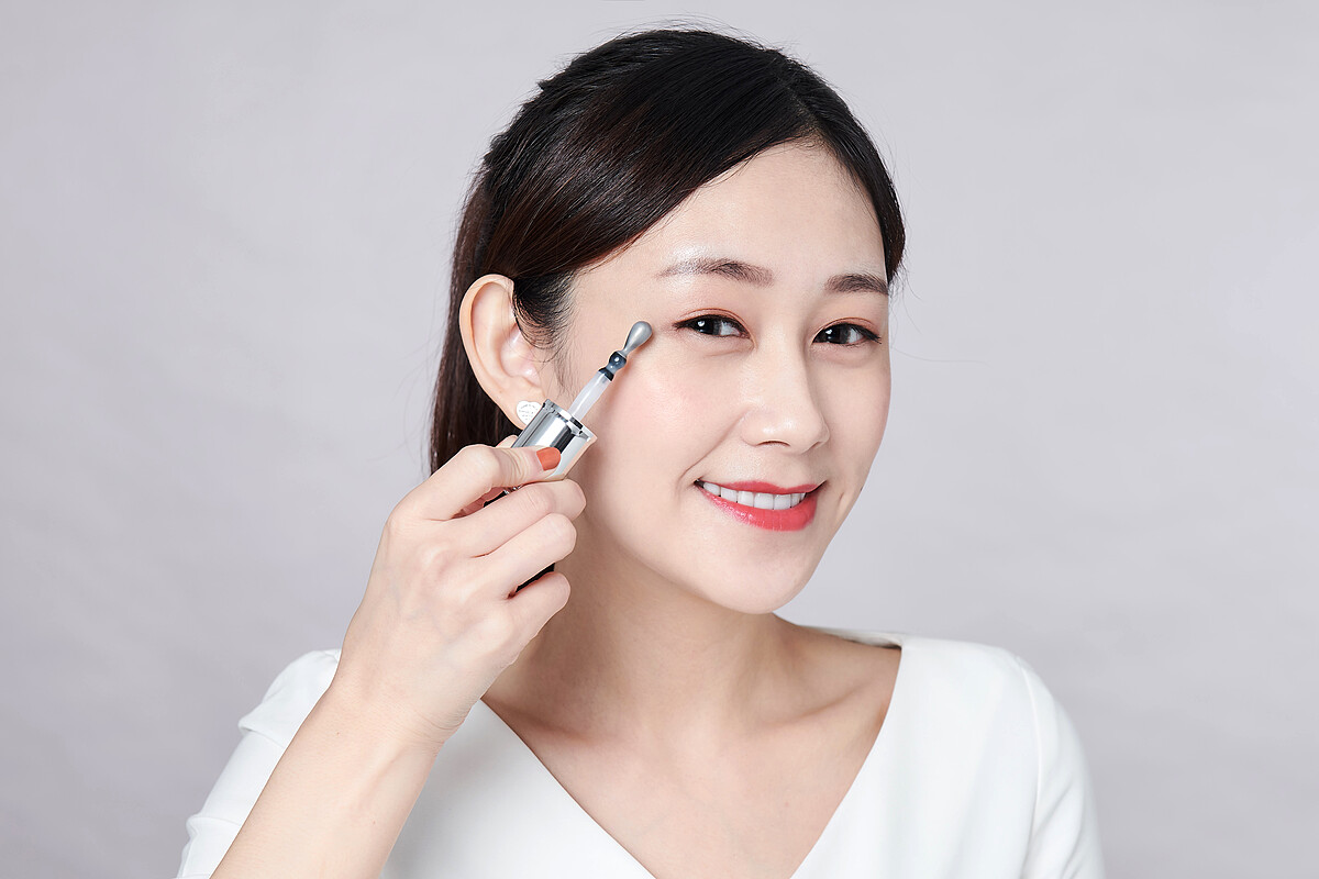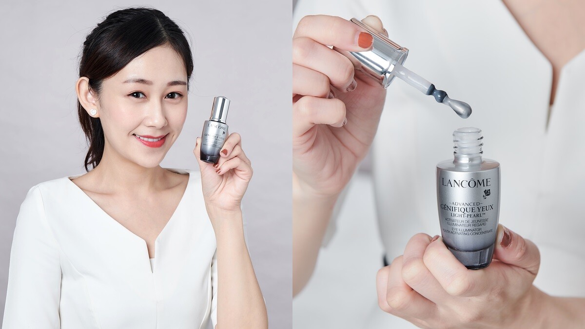 靜因說:「超進化肌因亮眼精粹添加了咖啡因、七葉樹和綠微藻,並特別設計360°可以旋轉的冰珠,不管是深度保養、按摩、冰鎮、紓緩通通沒問題,像我很容易早上眼睛拋,這時透過亮眼精粹以畫小螺旋的方式,只要30秒立刻回到深邃眼!」