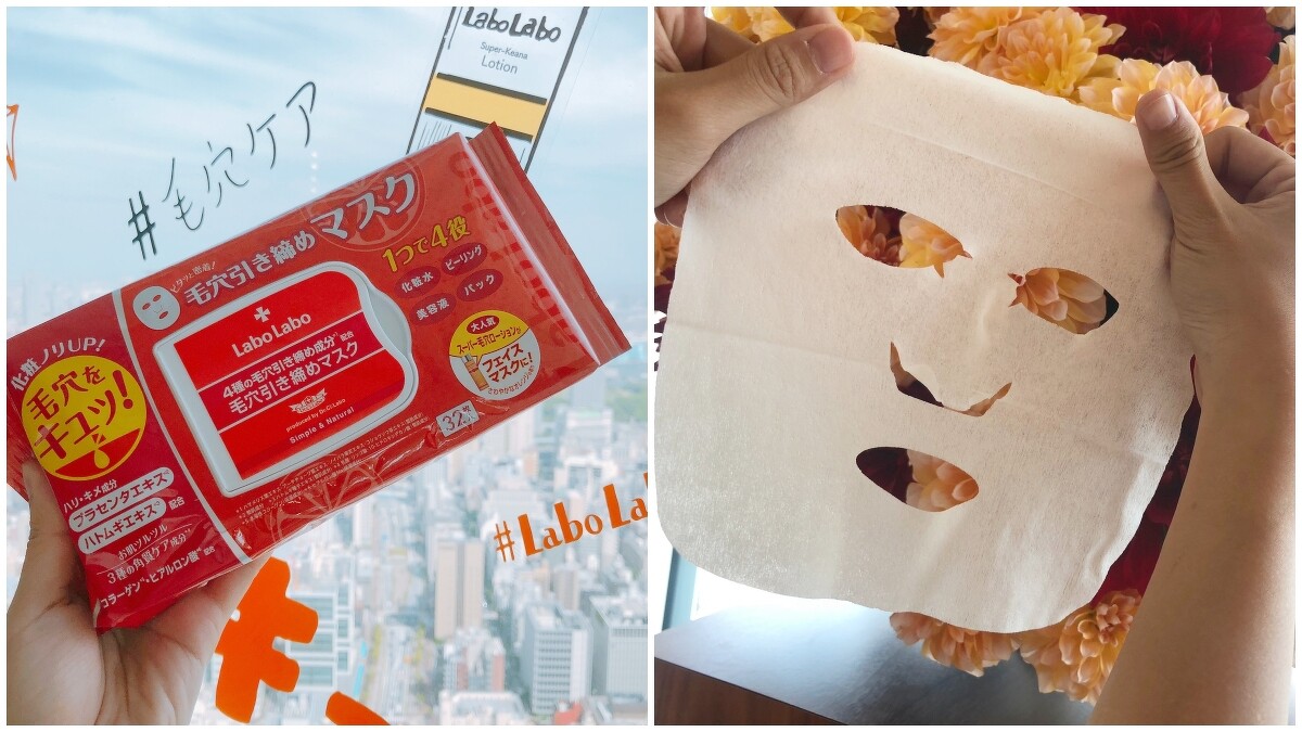 Labo Labo的明星商品「毛孔緊膚水EX」被許多人拿來以化妝棉濕敷,因此Labo Labo今年貼心推出了整包式的抽取式面膜,打開蓋口就能輕鬆拉出整片面膜。這也是開架保養品牌中的第一款毛孔緊緻抽取式面膜,訴求結合緊膚水、去角質、精華液與面膜的 4合1功能,裡頭延續毛孔緊膚水EX的毛孔緊緻成分,包含金縷梅、日本玫瑰果、朝鮮薊蜂王乳酸、玻尿酸等等。敷的時間約五分鐘即可,也很適合早上趕著出門前使用。