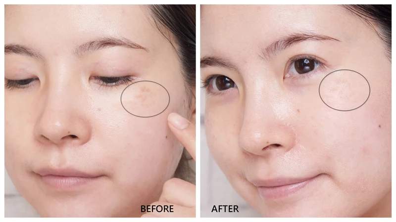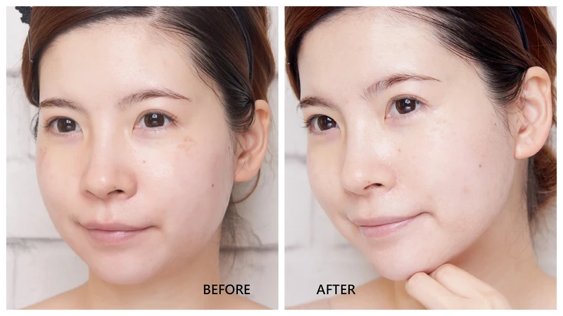 接著來測試長年困擾我的顴骨斑問題,老實說顴骨斑不會消失不見(除非去雷射,但時間也很漫長),上妝也很難遮掉@@