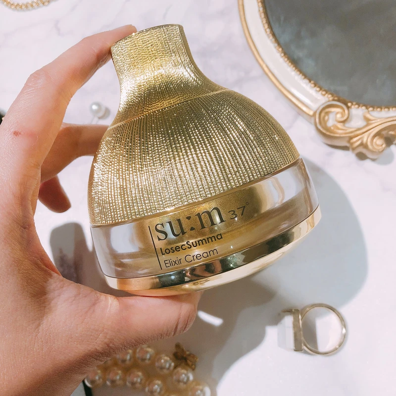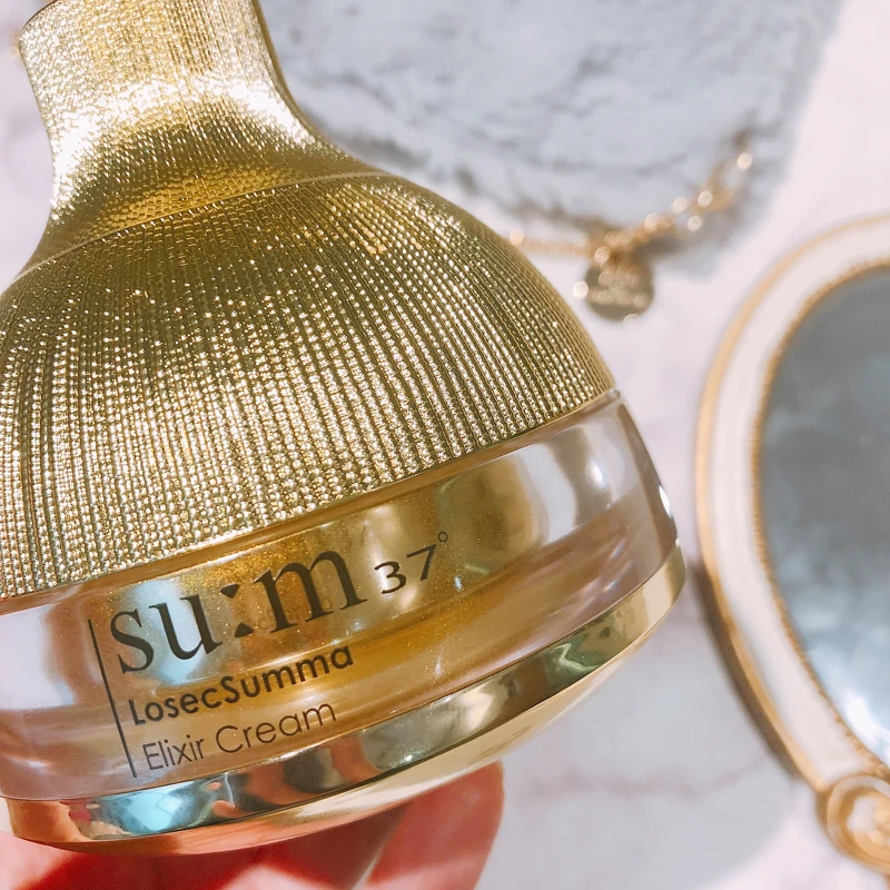 肌膚其實會出現各種老化問題,起因往往都是因為長期缺水!長期缺水肌表面宛如乾裂黃土般佈滿裂痕且沒有彈性,這時候,光是狂補水份也無法有效吸收,所以我們需要su:m37甦秘「金萃極緻無痕抗齡精華乳霜」這樣的高效頂級保養,藉由珍貴抗老成分「黃金聖樹精華」及24K純金,再搭配神經醯胺、透明質酸、維他命E…等修護成份,奶油般的豐盈乳霜包覆上述小分子營養精華,才能深入肌膚、補水同時全面抗老。這瓶被韓國媒體喻為「殿堂級凍齡密碼」的乳霜,厲害程度不同凡響!