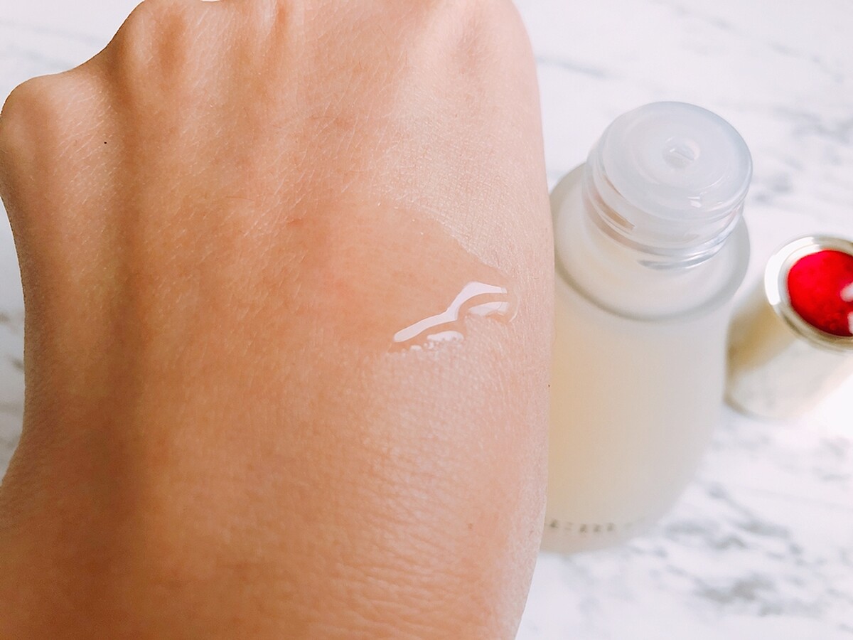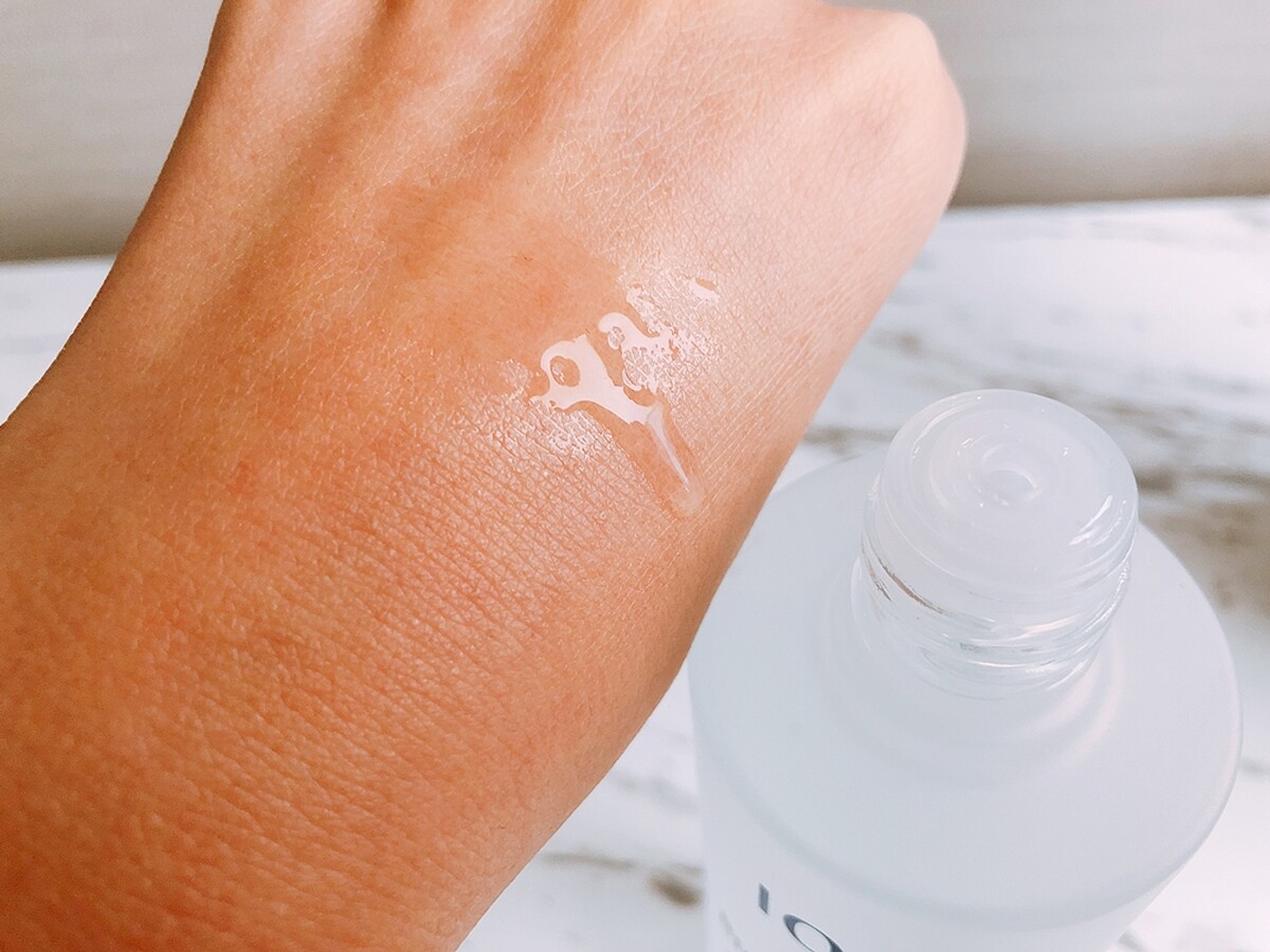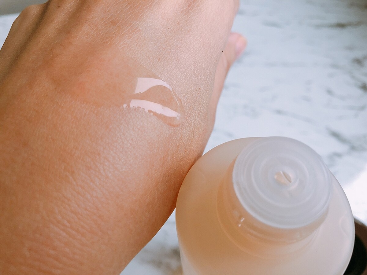 用起來質地是微稠的水狀,沒有味道。剛推開後吸收速度頗快,但會有一點點黏感,不過一下就消失了。除了單擦,同樣可濕敷使用,用後隔天肌膚會較透亮。